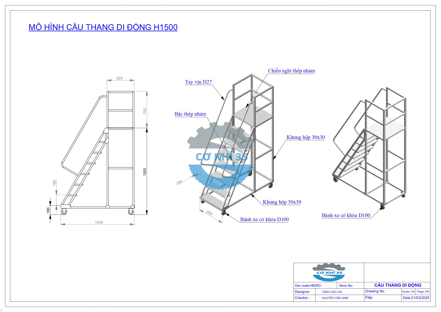 Thiết kế, sản xuất Thang di động 1m đến 3m trở lên cho kho công...
