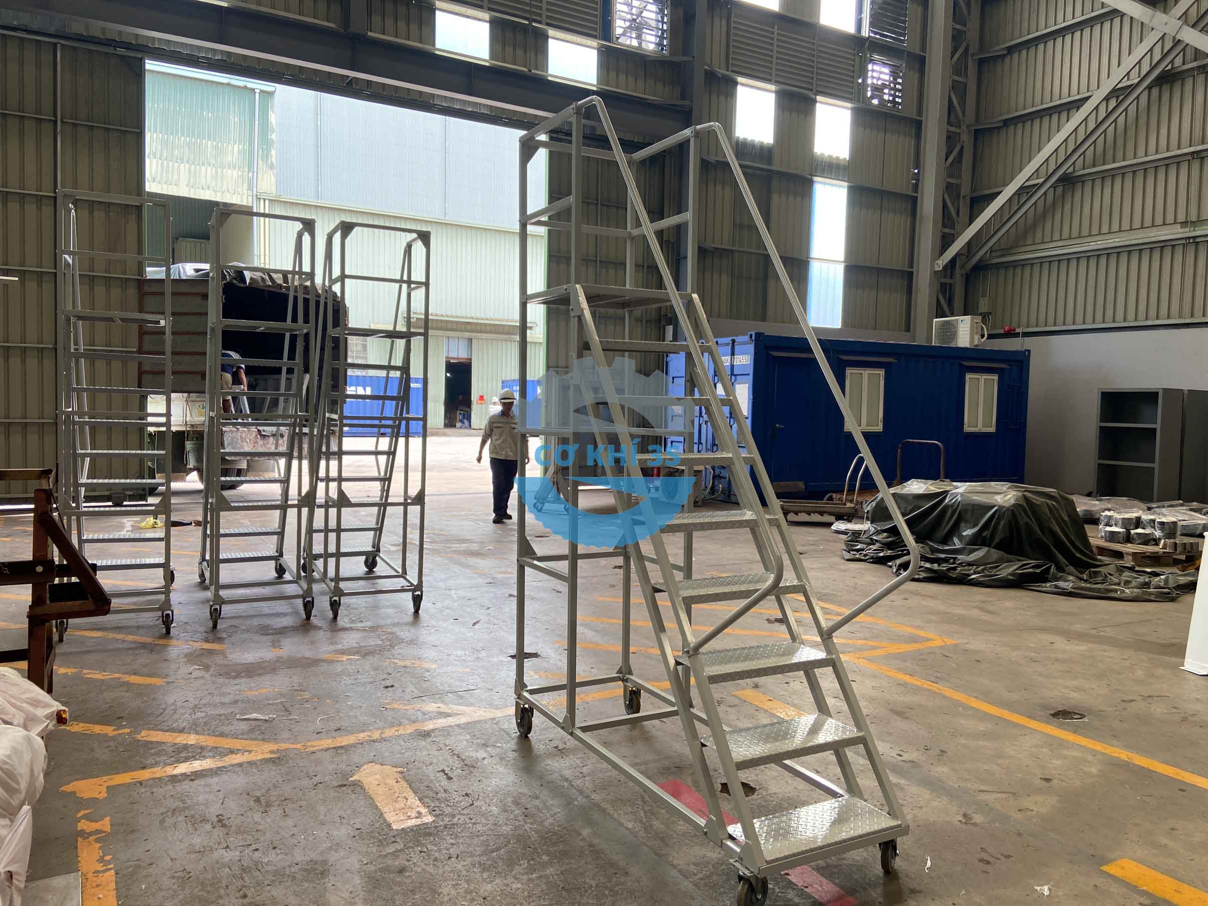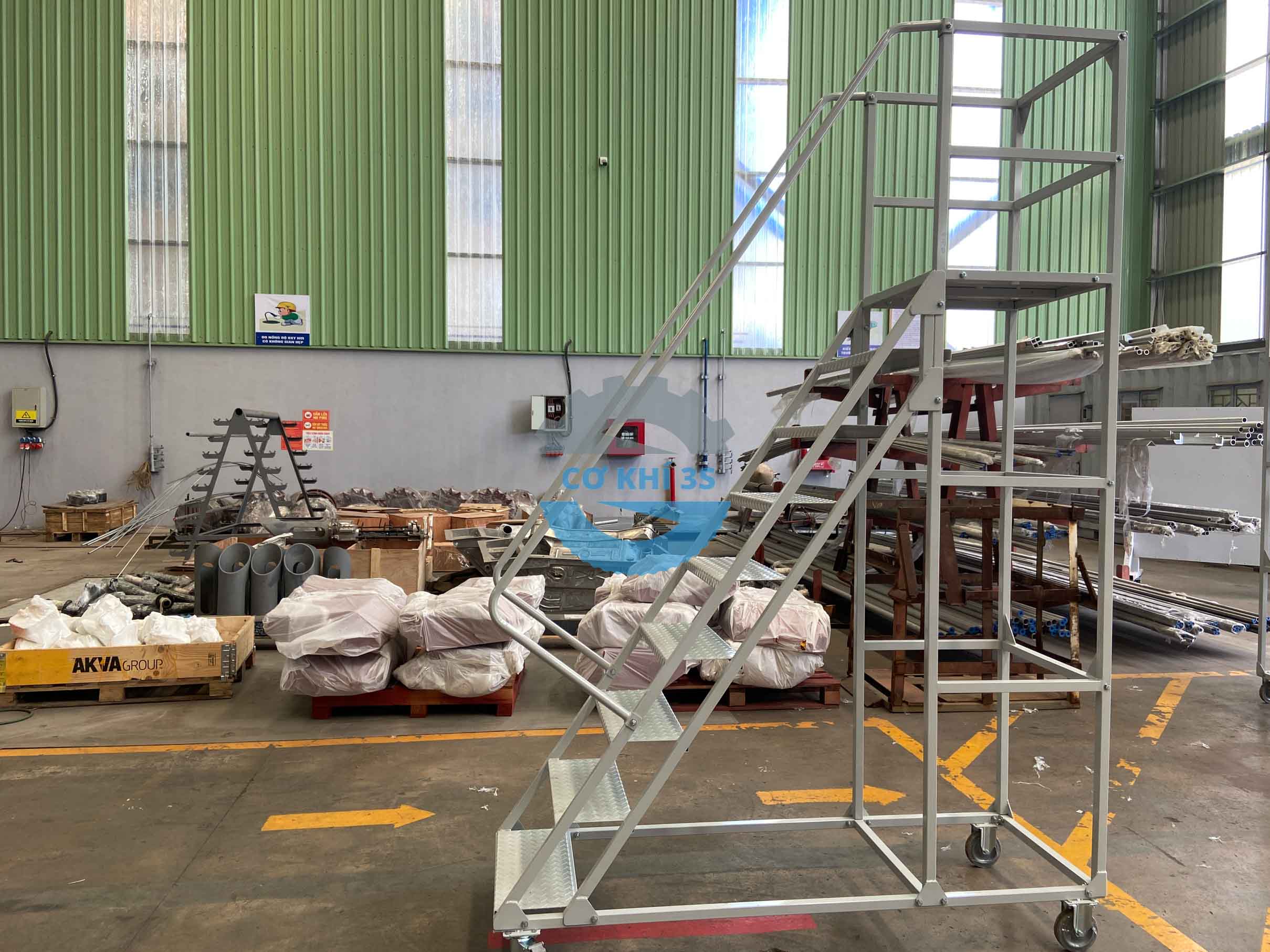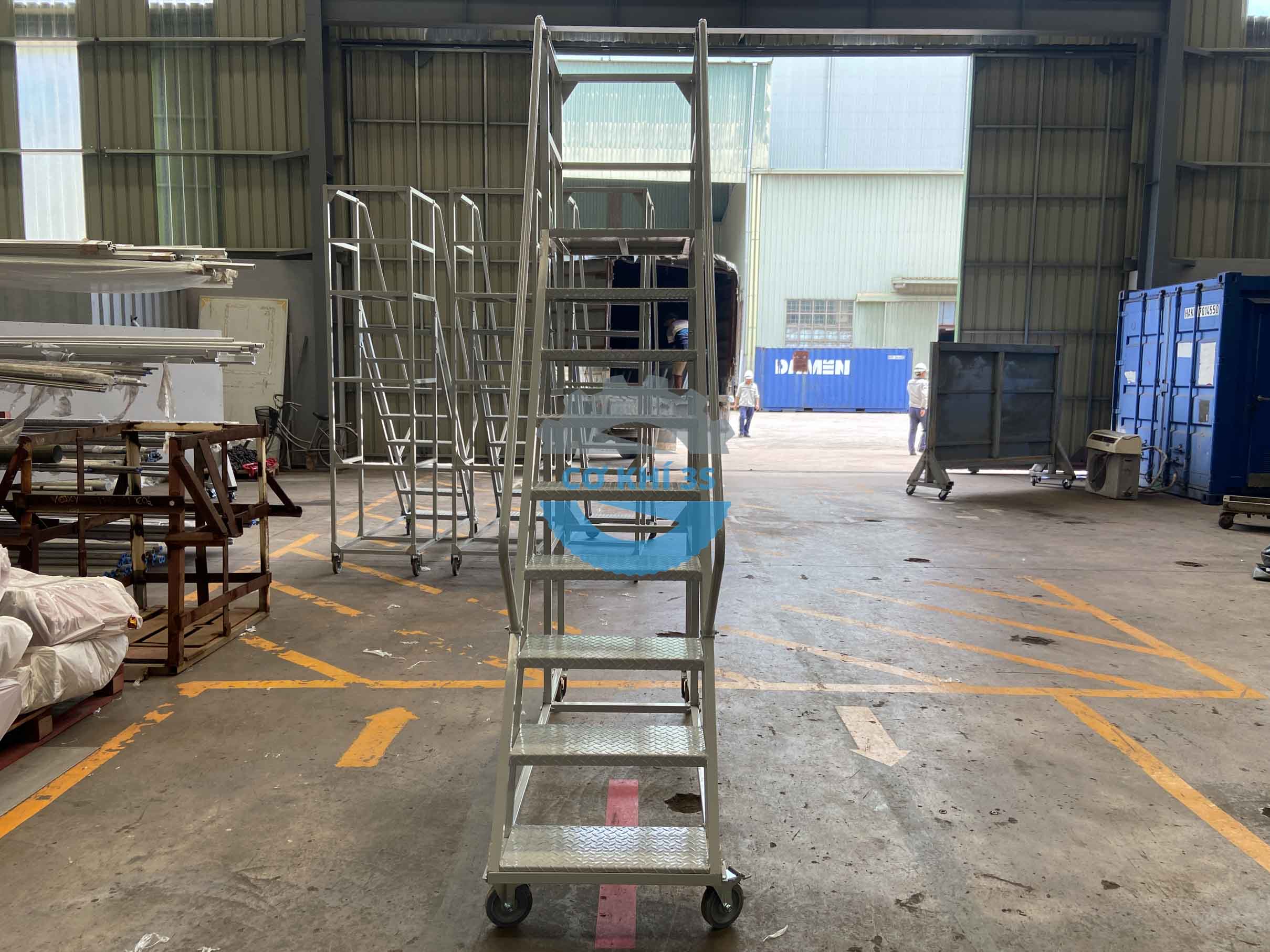 Cokhi3s là đơn vị sản xuất giá kệ chứa hàng và các vật tư công nghiệp cho các nhà máy, doanh nghiệp kho vận, sản phẩm xe thang di động cao 2000mm là bộ phận thuộc thiết bị nhà kho hoặc sử dụng cho các mục đich thao tác khác. Một số tên gọi phổ biến trên thị trường , xe thang di động (mobile ladder truck) hoặc thang kho có bánh xe (warehouse ladder with wheels) đều mang ý nghĩa về thang lấy hàng di động có bánh xe như nhau.