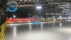 Kệ sàn lửng nhịp dài chân cột cho đơn vị Viettel Logitics sử dụng làm sàn thao tác vận chuyển hàng hóa phía dưới và trên thông suốt.