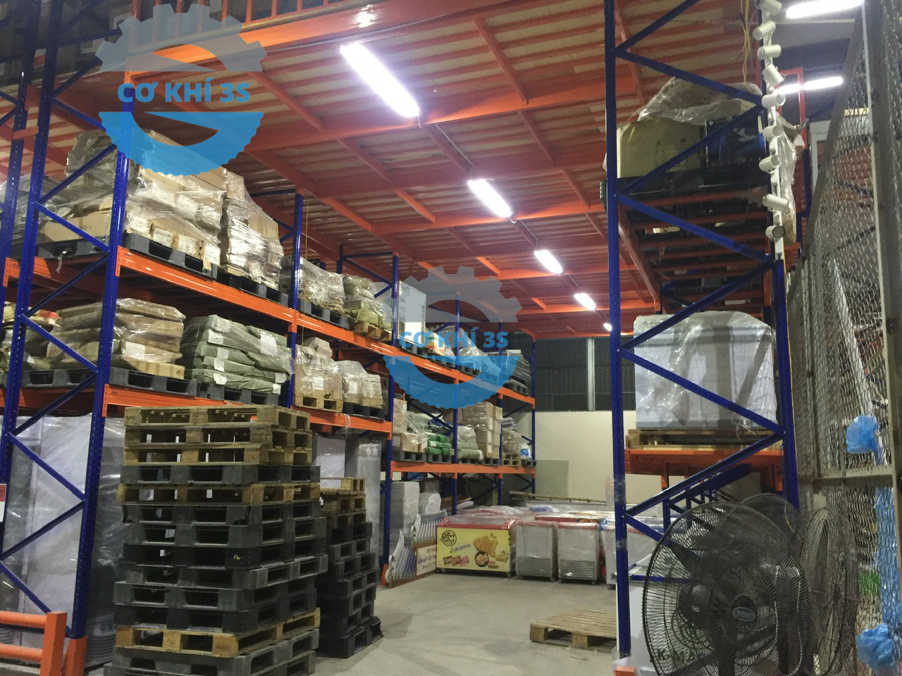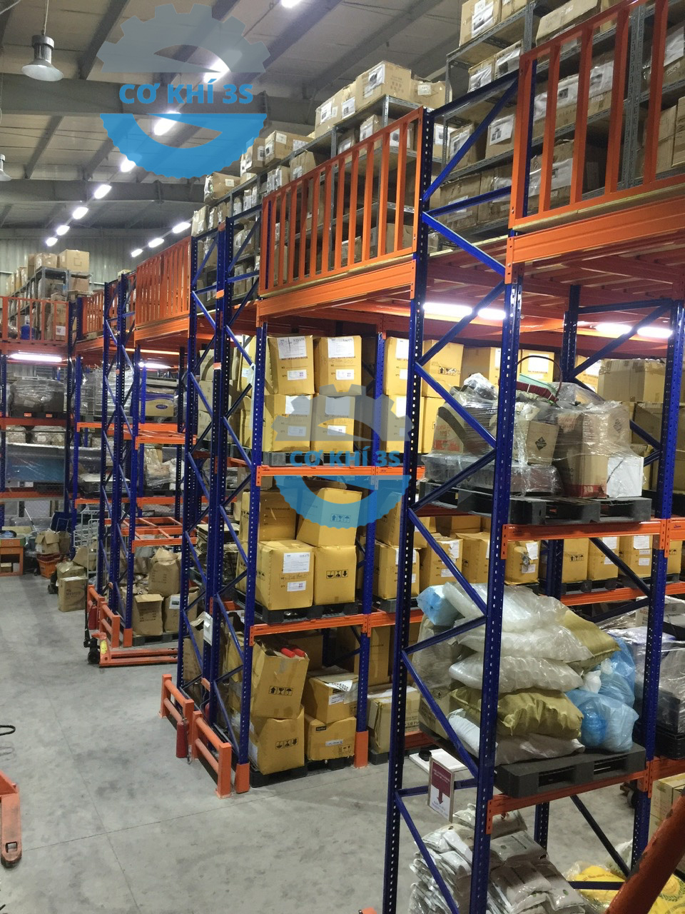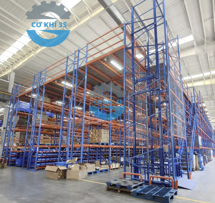 Một số hình ảnh về kệ kho kết hợp sàn thép để tải trọng nhẹ từ 200-500kg /tầng hoặc tải trọng pallet từ 1000-2000kg/tầng